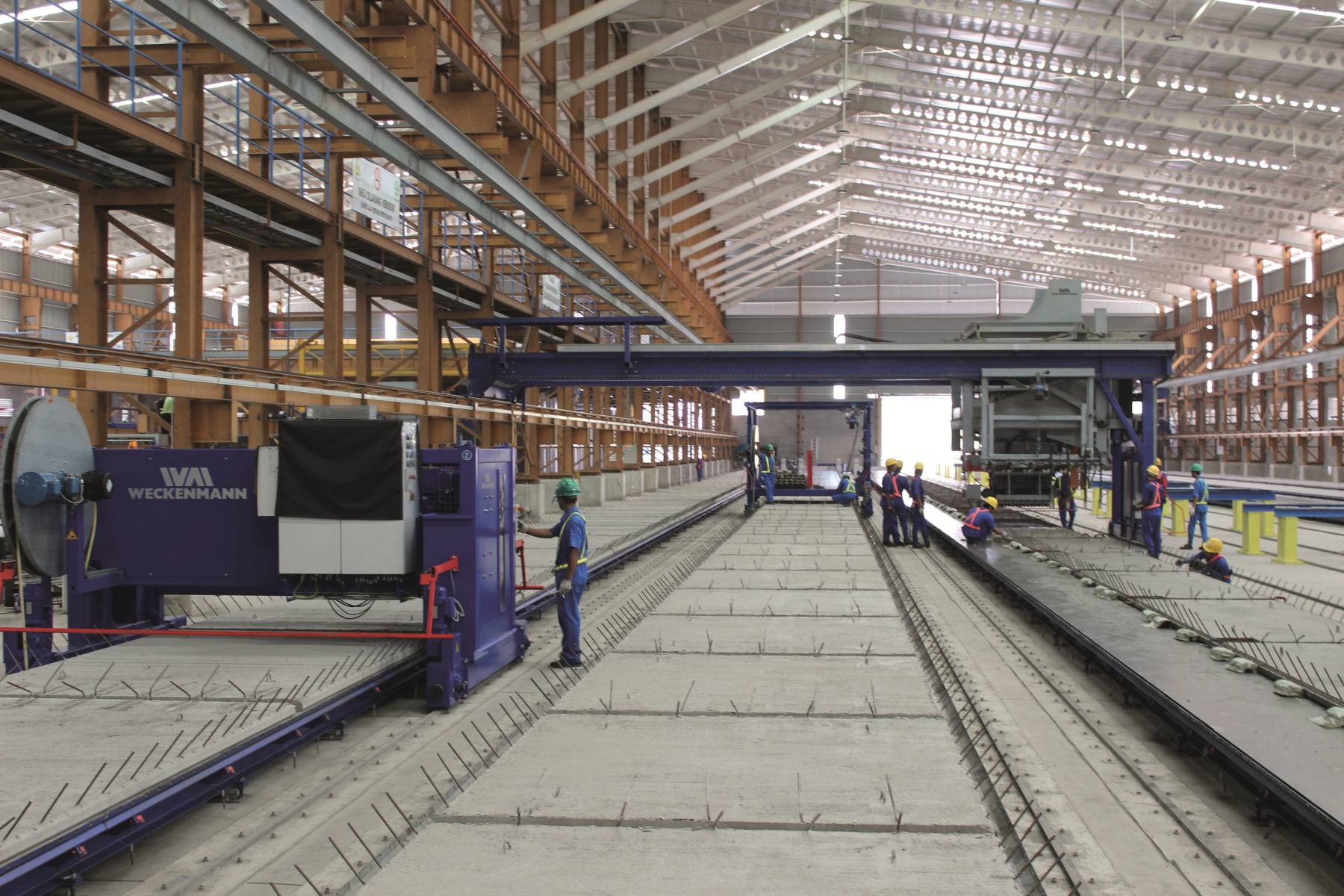 Dans cette usine indonésienne, Construx-Weckenmann a installé des bancs de précontrainte avec tous les équipements annexes: