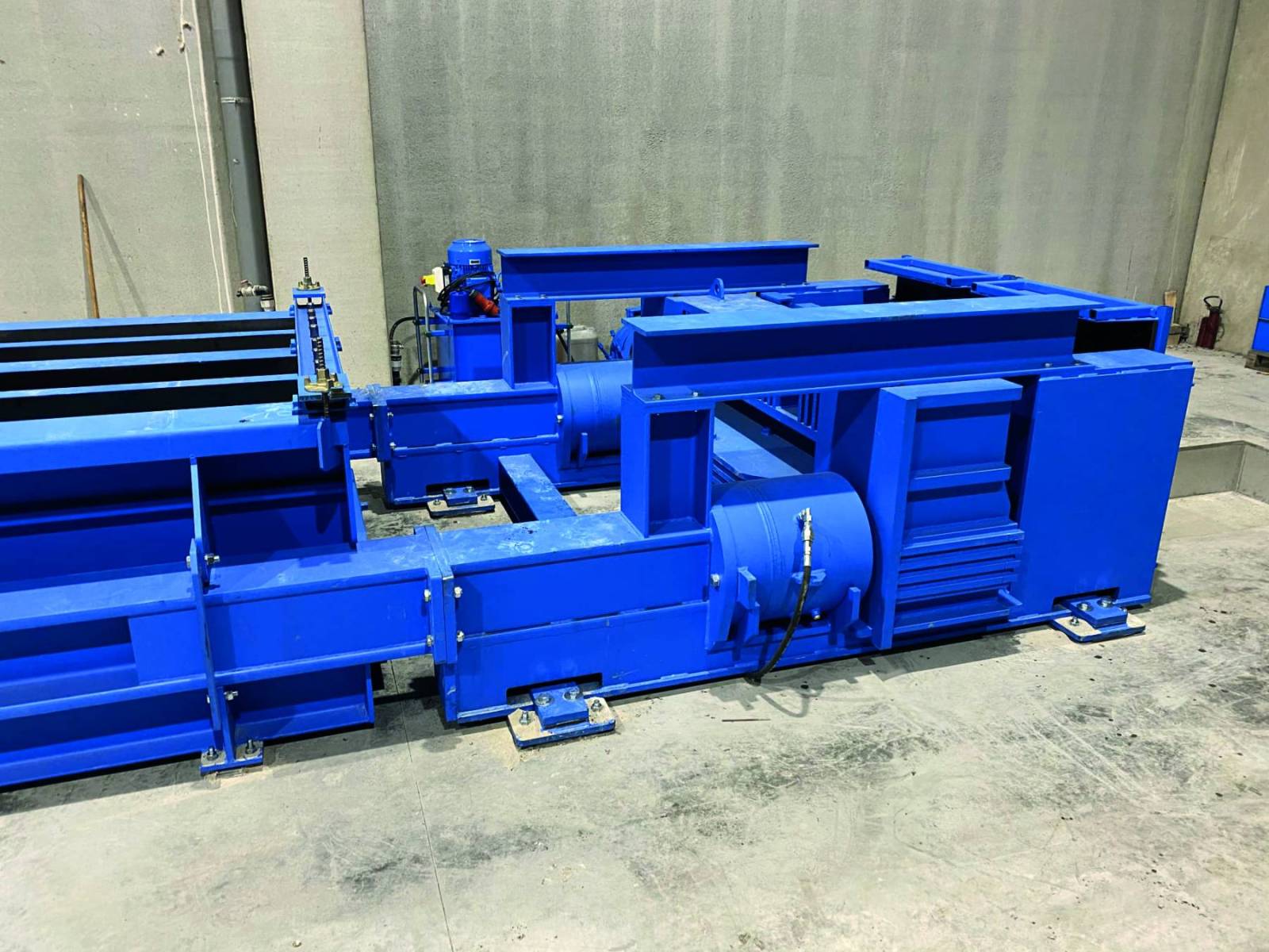 Ces unités sont conçues pour la production de poutres en béton précontraint d’une longueur maximale de 40 m et d’une largeur réglable de 300 à 600 mm. Construx-Weckenmann a conçu ces coffrages de précontrainte comme des bancs autoréactifs, ce qui signifie qu’ils reprennent tous les efforts de précontrainte sans nécessiter de butées. Le coffrage posé sur le banc est non réactif et entièrement hydraulique. Les têtes de précontrainte actives et passives absorbent les efforts générés par les vérins de précontrainte de 500 t. L’about mobile est équipé de deux vérins fixes avec système de serrage hydraulique pour transférer les efforts au banc autoréactif. La structure permet un mouvement libre du banc dans le sens longitudinal pendant le processus, et l’installation est divisée en quatre sections solidement reliées par des vis pour assurer un transfert optimal des efforts. Les coffrages 2 modules de Construx-Weckenmann sont dotés de deux poches utilisables séparément.