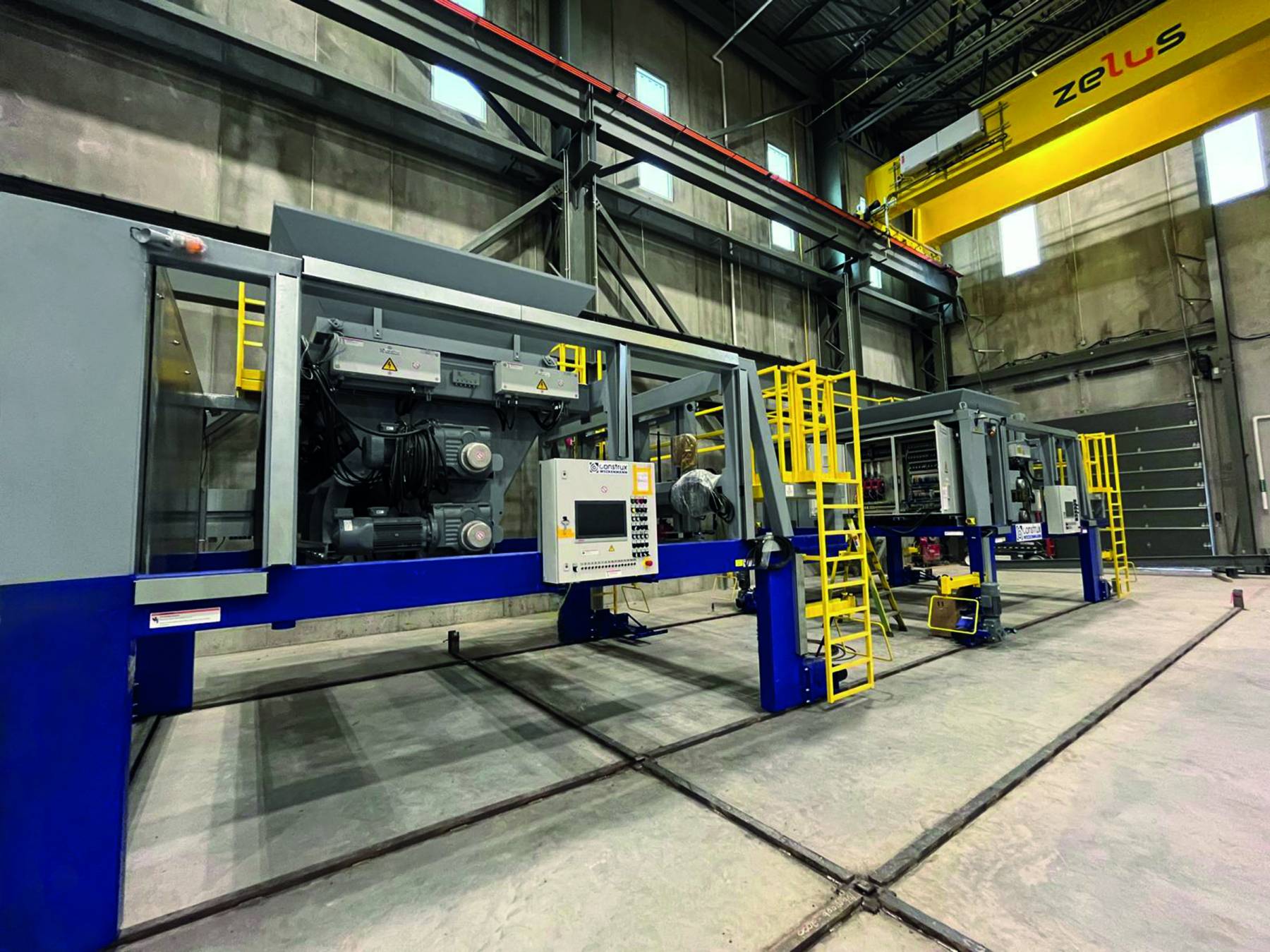 These installations are designed for the production of prestressed concrete beams, with a length of up to 40m and an adjustable width between 300mm and 600mm. Construx-Weckenmann designs these prestressing moulds as self-reacting beds, this means that the beds take all the prestressing forces, and no abutments are required. The mould sitting on the bed is non-reactive and fully hydraulically operated. The live- and dead ends are capable of absorbing the forces generated by the 500T prestressing rams. The live-end features two fixed-position cylinders with a hydraulic clamping system to transfer forces to the self-reactive bed. The structure allows for free longitudinal movement of the bed during the process, and the installation is divided into four sections that are securely bolted together to ensure proper force transfer. The Construx-Weckenmann two-gang moulds have two pockets which can be used independently.