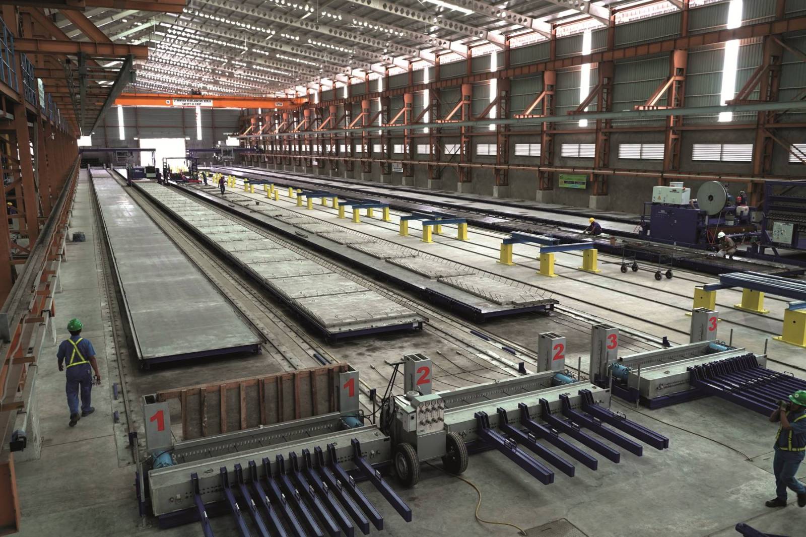 In this Indonesian production facility, Construx-Weckenmann installed prestressing beds for floor slabs and all related equipment